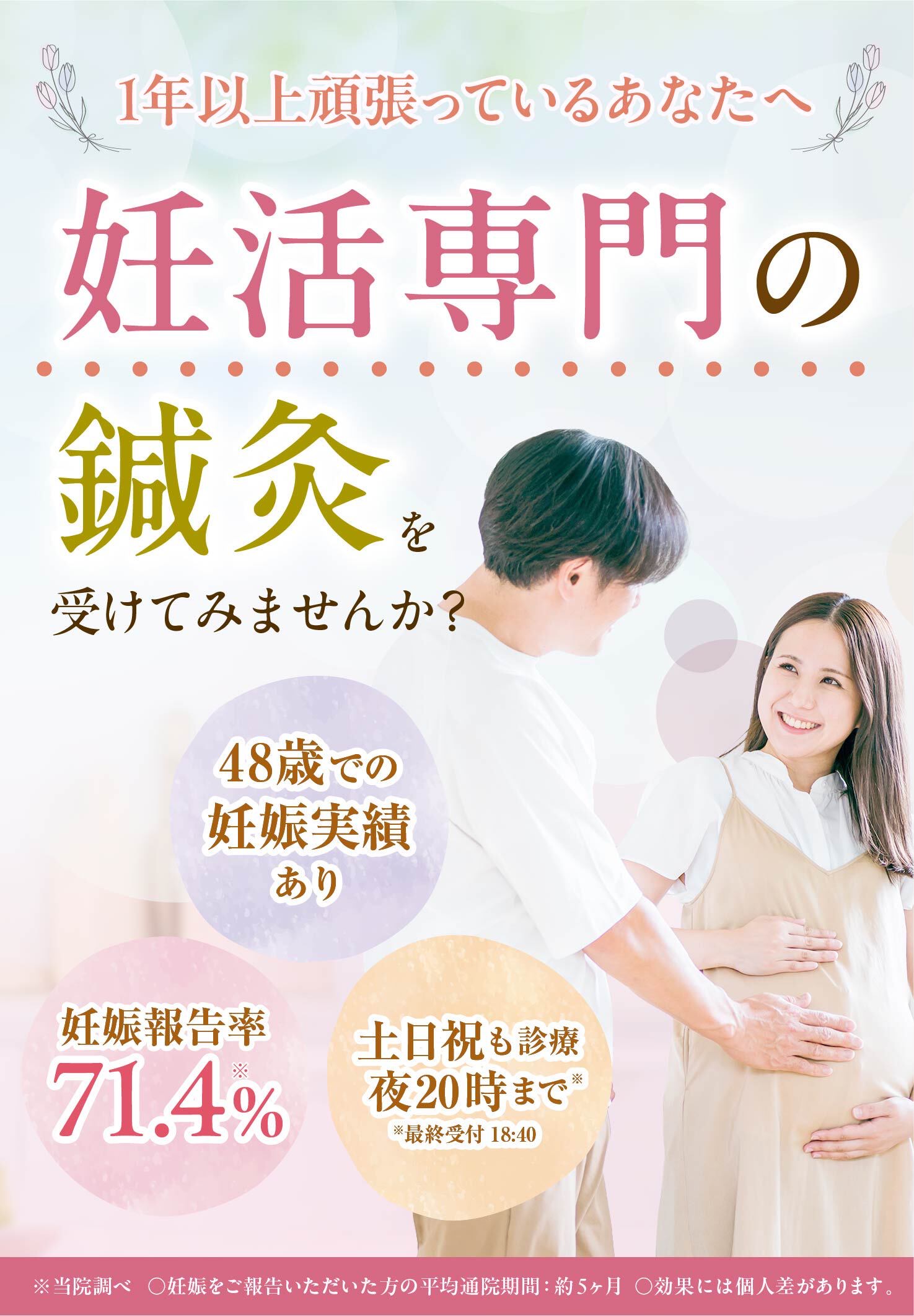 5か月以上、不妊鍼灸を行った方の妊娠実績が71,4%。